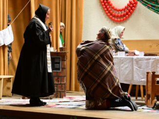 Wystawiły ją nasze gazdynie. A inspirację zaczerpnęły z nieodległej wcale rzeczywistości kobiet na wsi. Przedstawienie nawiązywało do niepraktykowanego już dziś obrzędu zwanego „wywodem”. Otóż jeszcze u progu lat 70. kobieta (mimo że ogromnym nakładem swoich […]