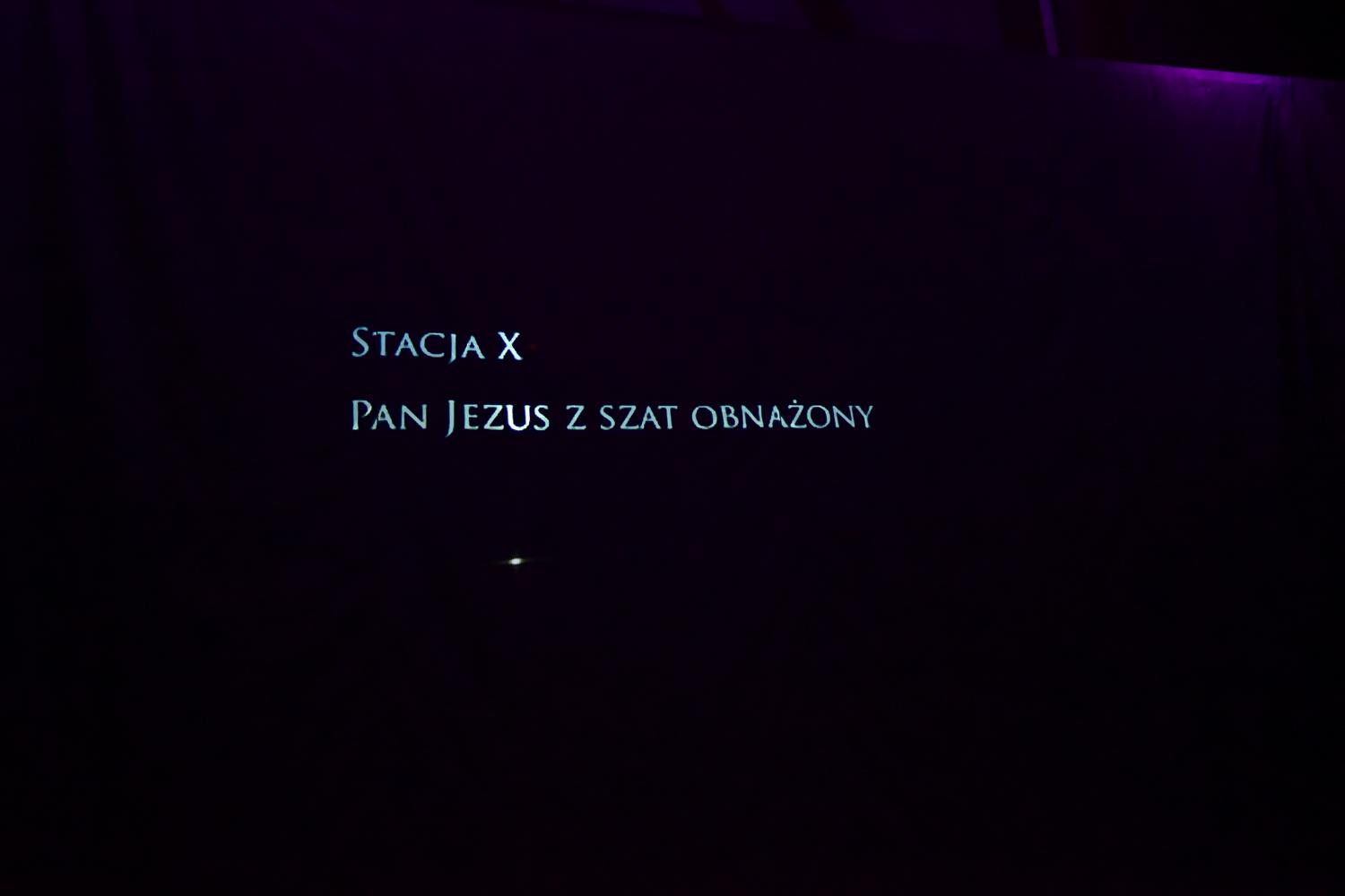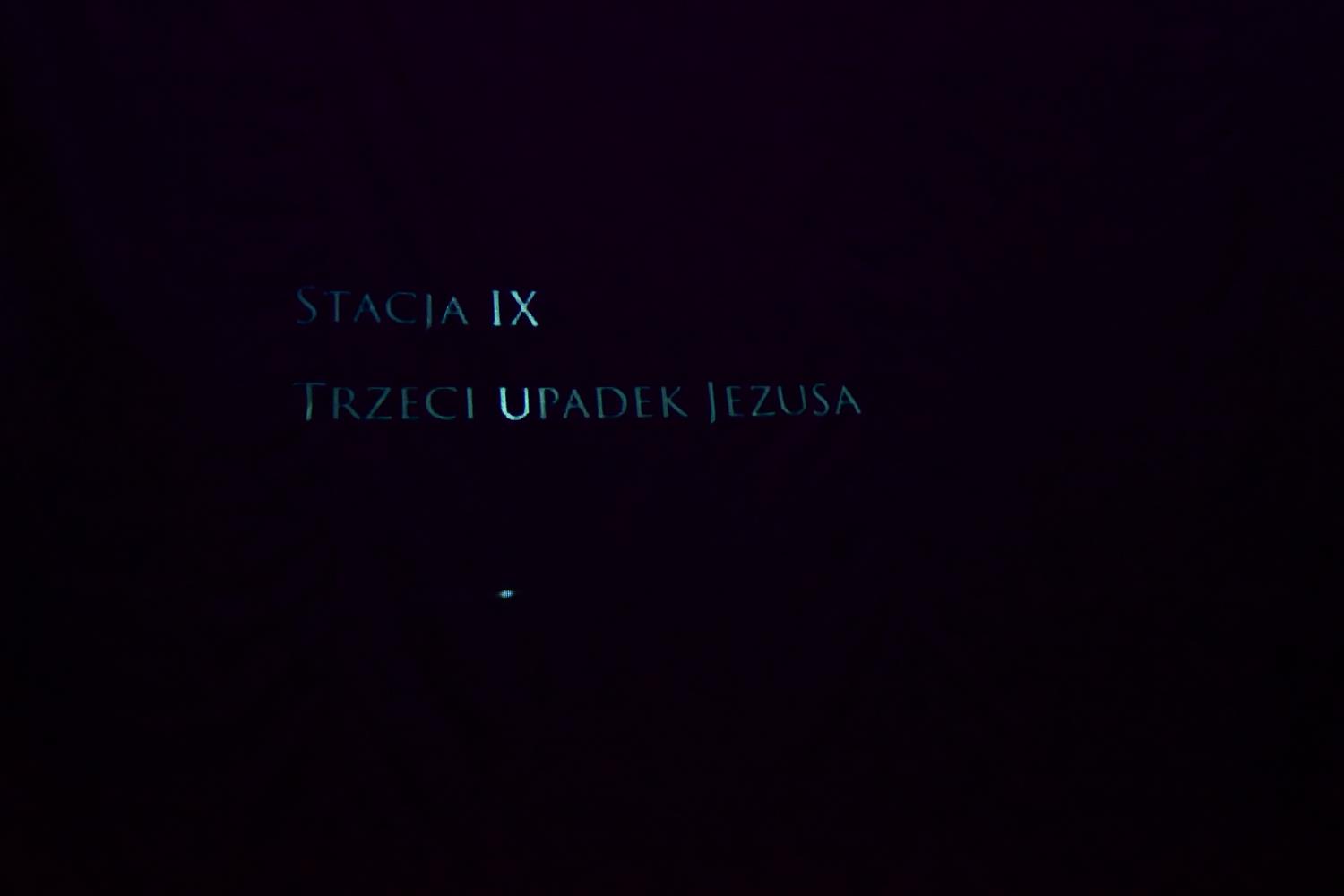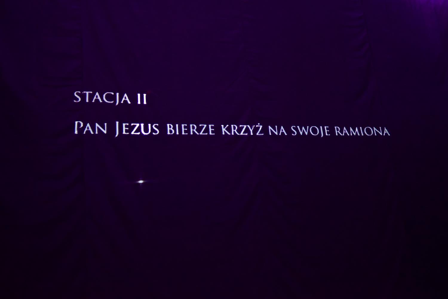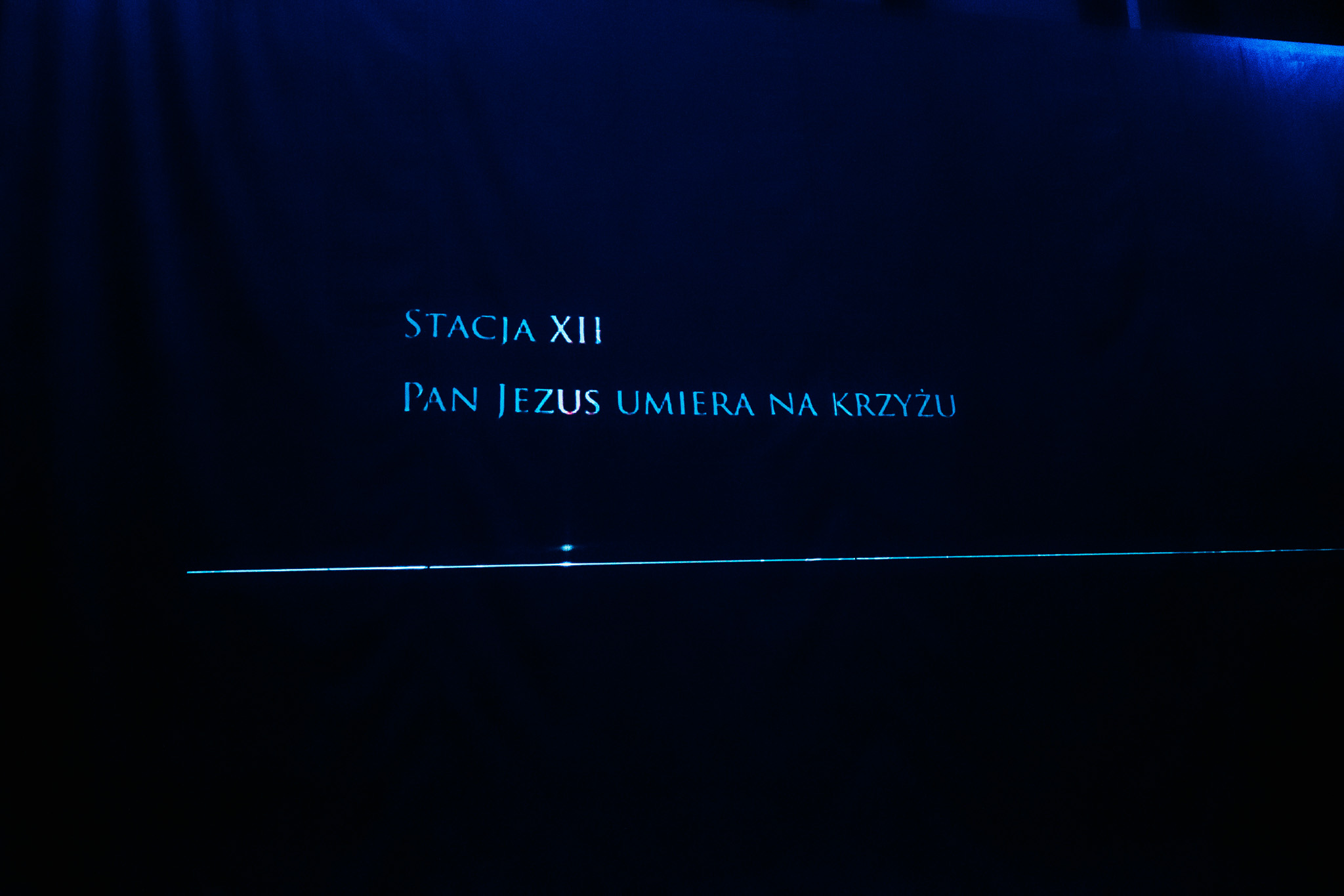 Każdej z czternastu stacji towarzyszył fragment filmu „Pasja” w reżyserii Mela Gibsona, którego realistyczne i poruszające sceny cierpienia Jezusa stanowiły tło dla dalszych rozważań. Po każdej projekcji zza kotary wyłaniała się postać – uosobienie konkretnej emocji. Prowadząca pytała ją: „Kim jesteś?”, a odpowiedź wprowadzała wiernych w głębię danej stacji.