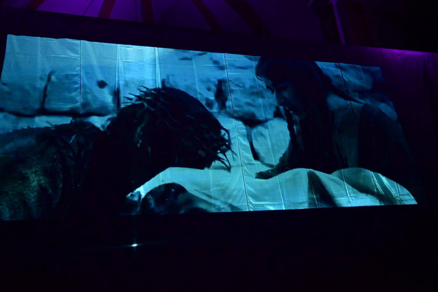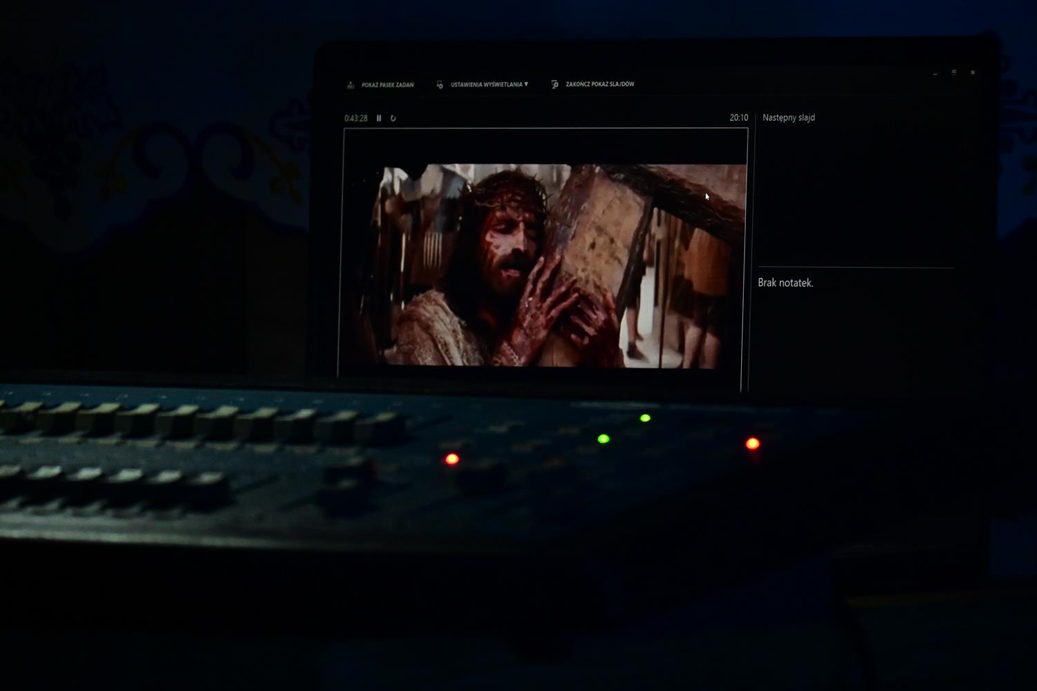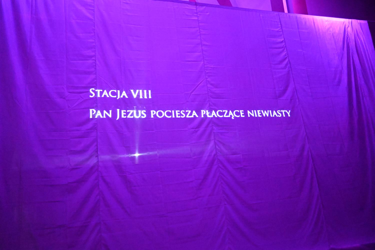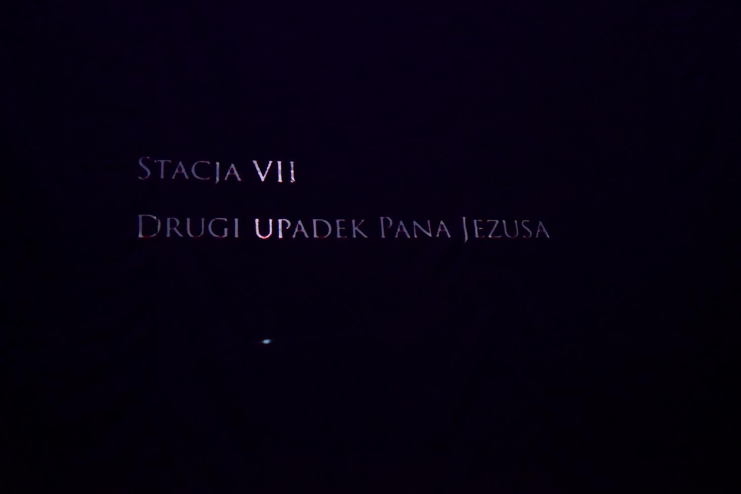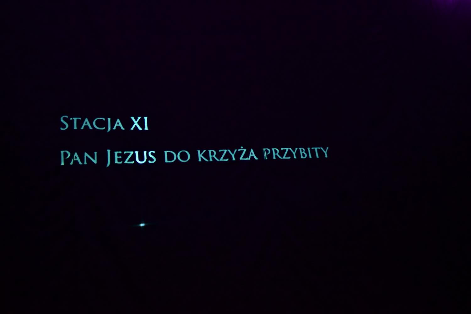 Każdej z czternastu stacji towarzyszył fragment filmu „Pasja” w reżyserii Mela Gibsona, którego realistyczne i poruszające sceny cierpienia Jezusa stanowiły tło dla dalszych rozważań. Po każdej projekcji zza kotary wyłaniała się postać – uosobienie konkretnej emocji. Prowadząca pytała ją: „Kim jesteś?”, a odpowiedź wprowadzała wiernych w głębię danej stacji.