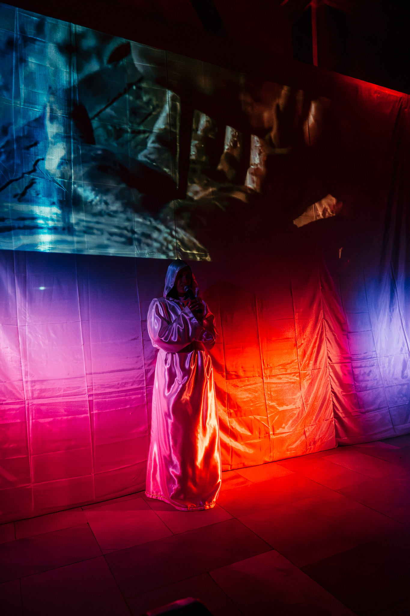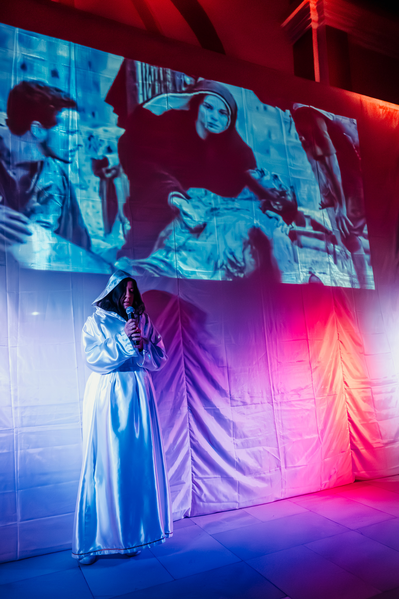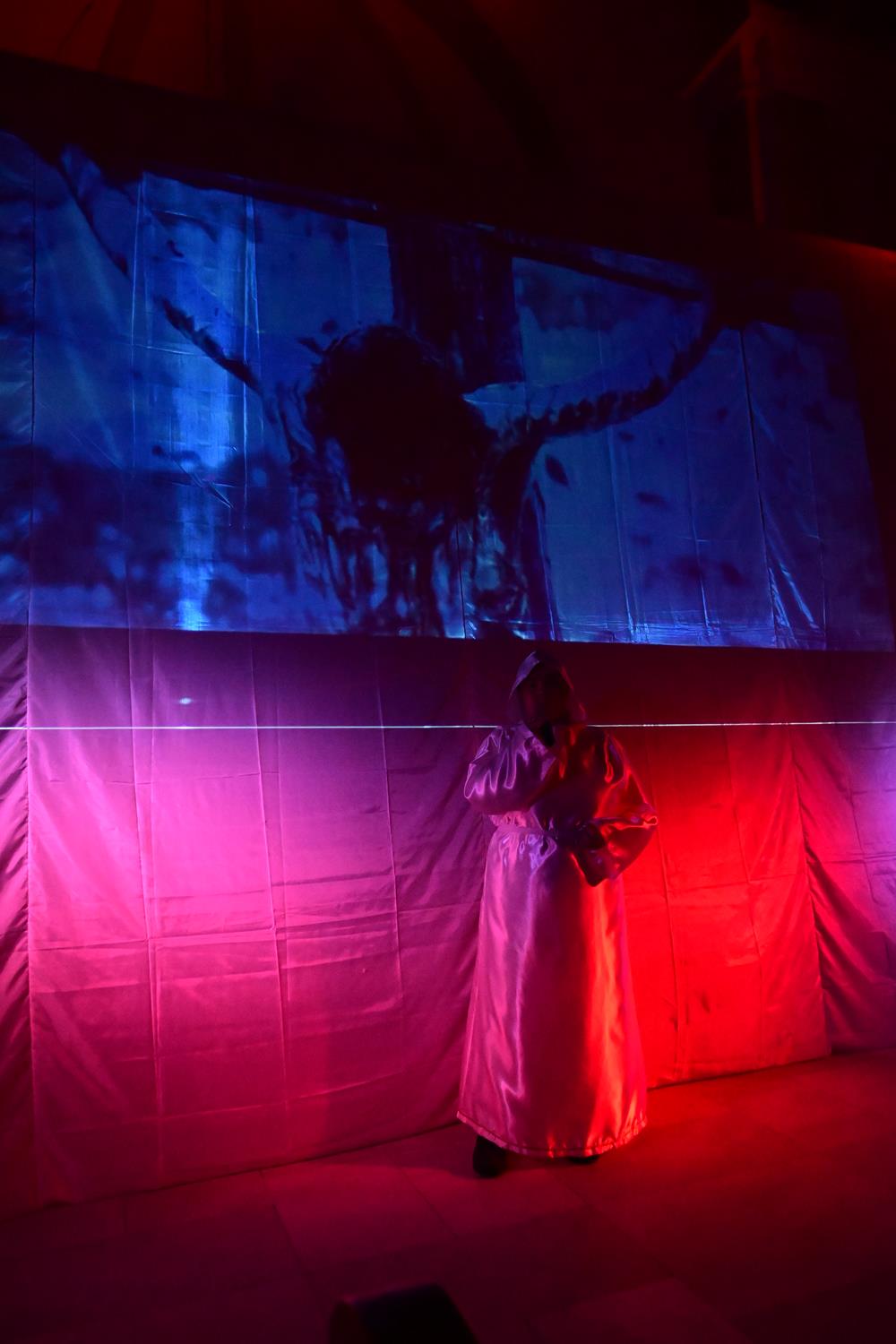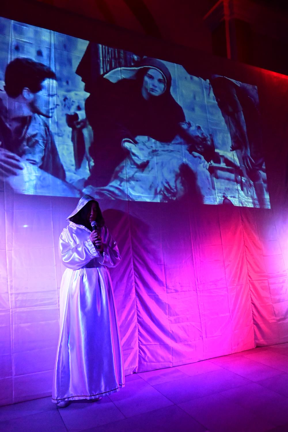 Każdej z czternastu stacji towarzyszył fragment filmu „Pasja” w reżyserii Mela Gibsona, którego realistyczne i poruszające sceny cierpienia Jezusa stanowiły tło dla dalszych rozważań. Po każdej projekcji zza kotary wyłaniała się postać – uosobienie konkretnej emocji. Prowadząca pytała ją: „Kim jesteś?”, a odpowiedź wprowadzała wiernych w głębię danej stacji.