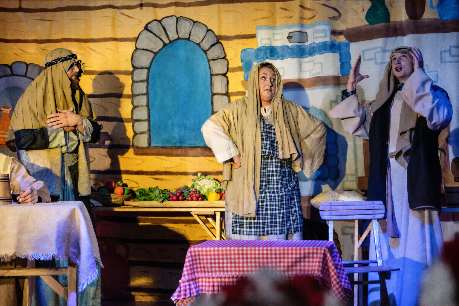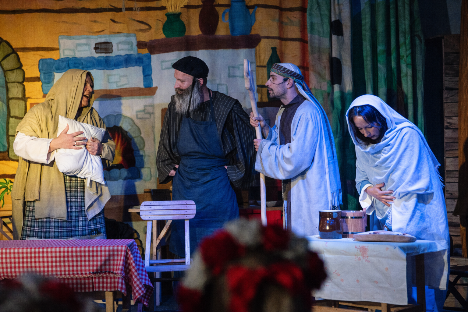 Sporo humoru wniosły do przedstawienia sceny rozgrywające się w karczmie „Szalom”, a to za sprawą barwnej gospodyni i jej męża. Nie zabrakło jednak i momentów smutnych, jak choćby odmowy przyjęcia pod dach karczmy Miriam i Józefa, zdążających na spis ludności do Betlejem.