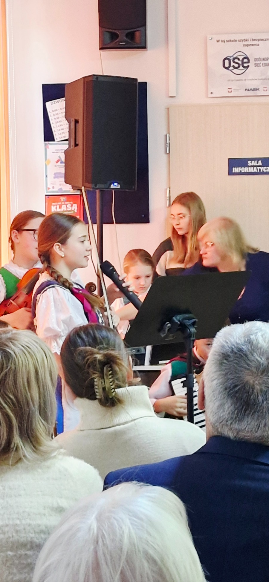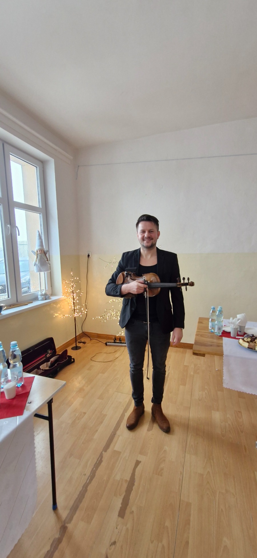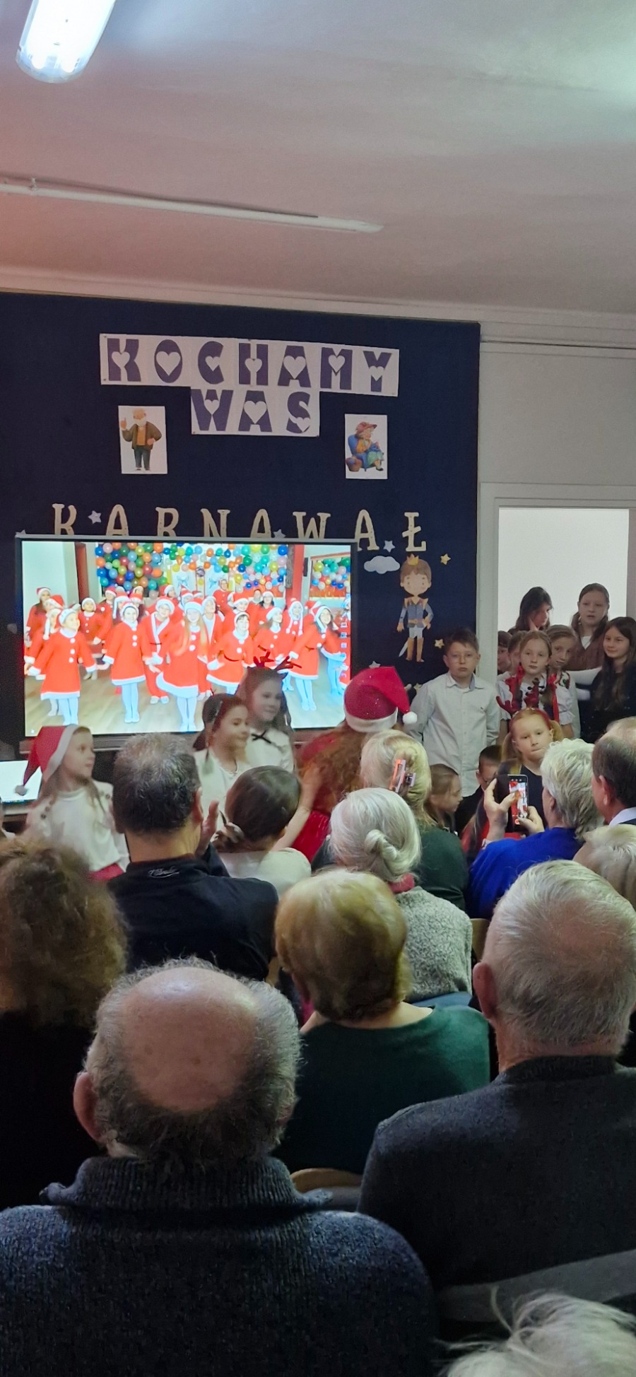 W dalszej części programu na scenie pojawili się uczniowie klas IV-VIII. Starsza młodzież zadbała o nastrojową oprawę wydarzenia, prezentując tradycyjne kolędy. Wspólne granie na instrumentach i śpiew stworzyły podniosłą, a jednocześnie bardzo ciepłą atmosferę, która udzieliła się wszystkim zgromadzonym. Prawdziwym zwieńczeniem akademii był popisowy występ Piotra Szewczyka, którego talent i charyzma stały się muzyczną kropką nad „i” całego spotkania.