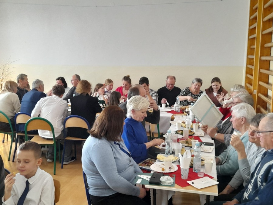 Po zakończeniu części oficjalnej dziadkowie zostali zaproszeni na smaczny poczęstunek, gdzie przy wspólnej kawie i ciastku, w miłej atmosferze, mogli dzielić się wrażeniami z występów swoich wnucząt.