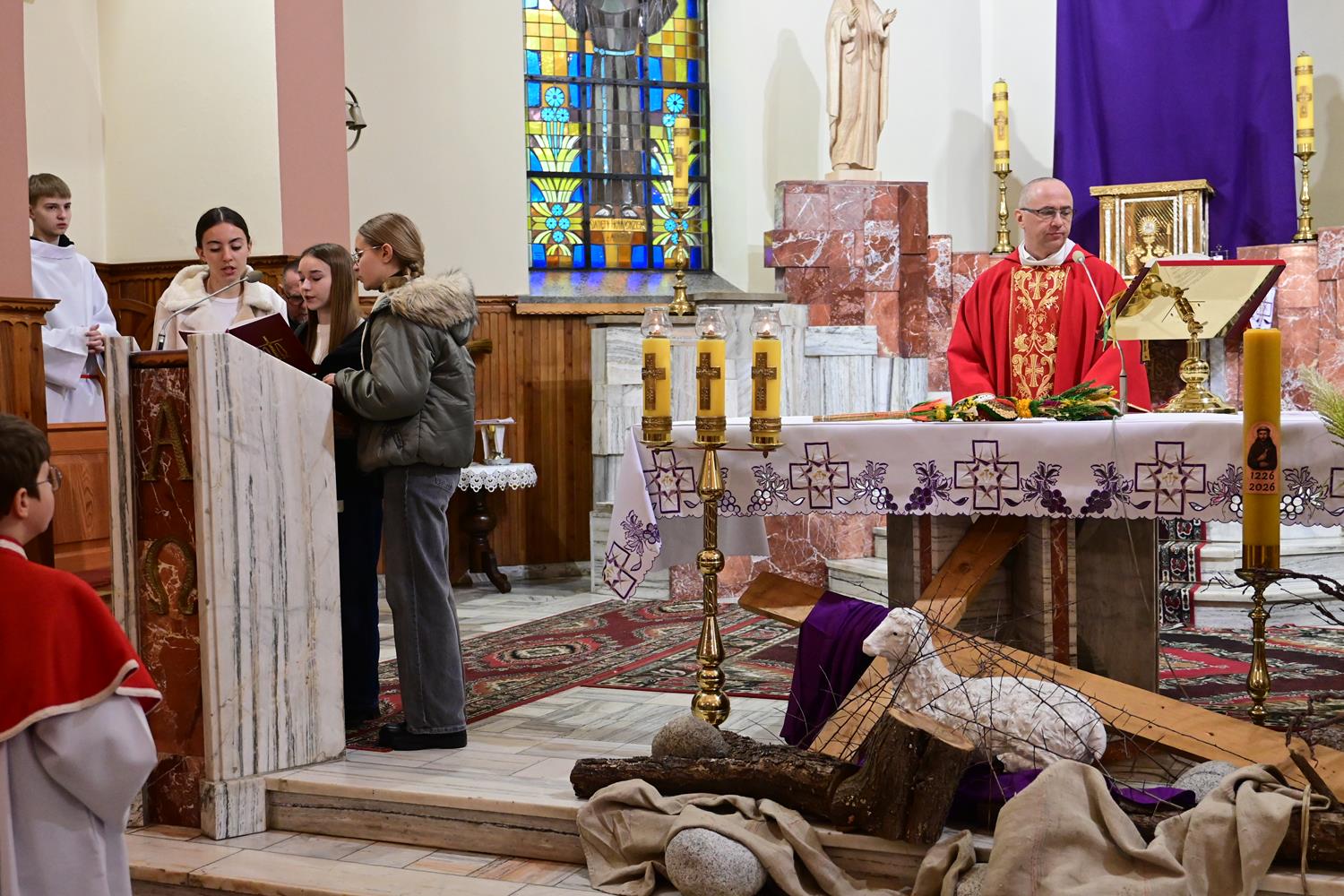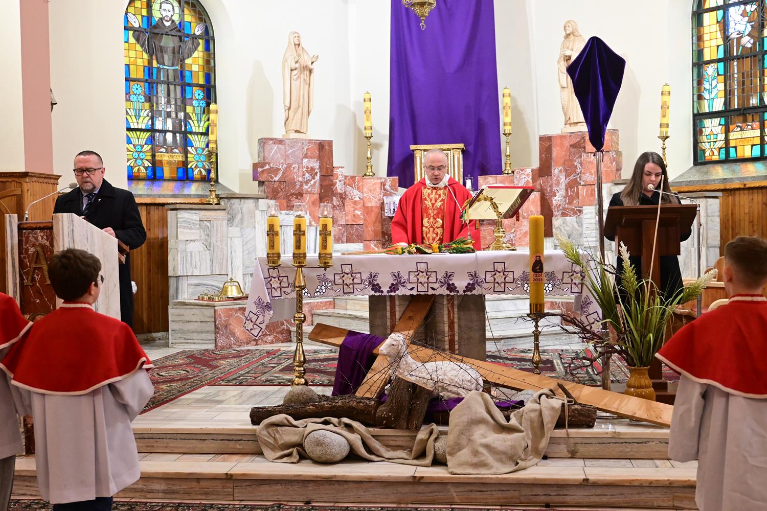 Liturgia Niedzieli Palmowej ma również głęboki, refleksyjny wymiar. Podczas tej Mszy św. odczytywany jest opis Męki Jezusa Chrystusa, który wprowadza nas w tajemnicę Jego cierpienia i miłości do człowieka. W tym roku lektorami czytającymi tę wyjątkową ewangelię byli: o. Paweł, Andrzej Różyński i Edyta Knurowska.