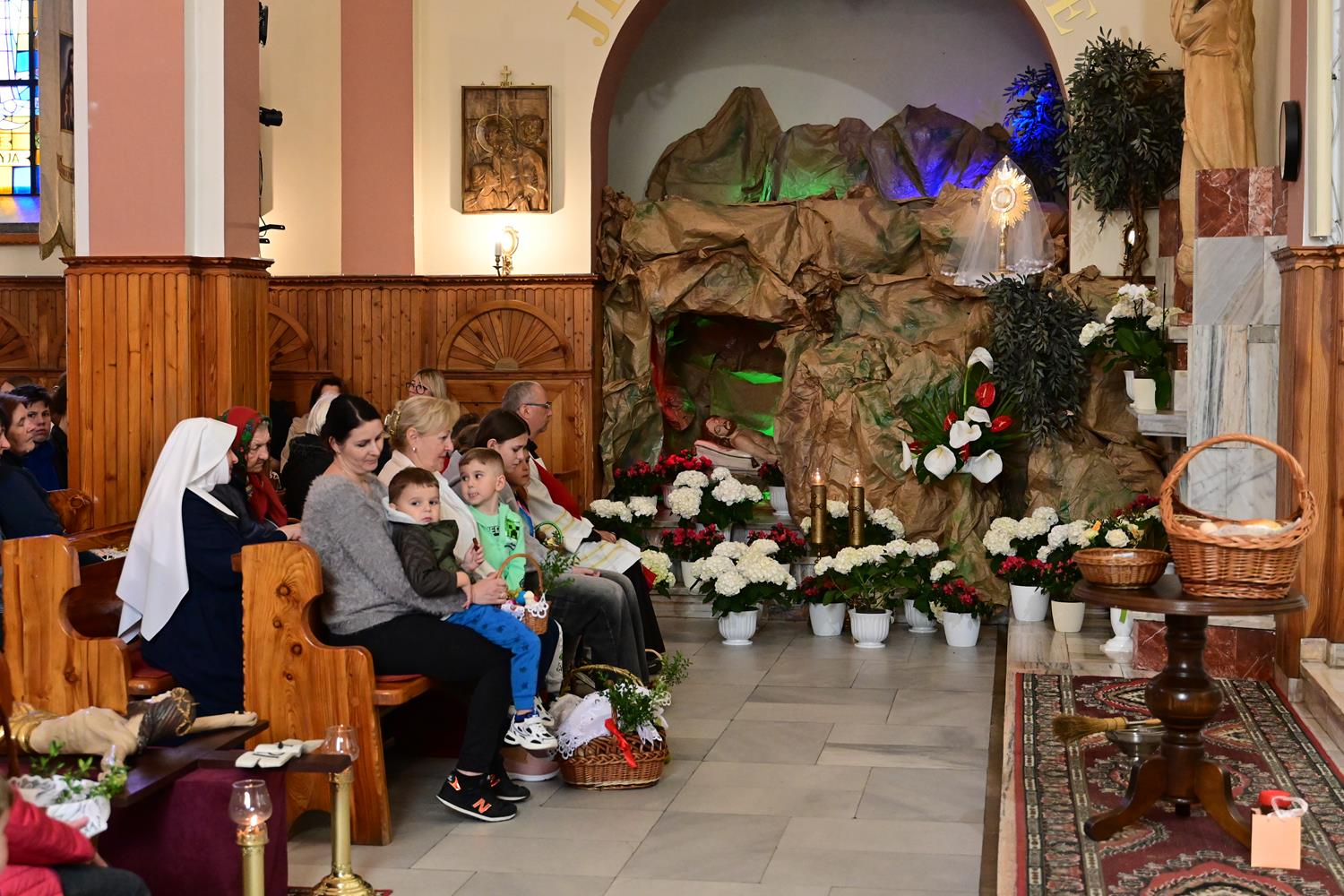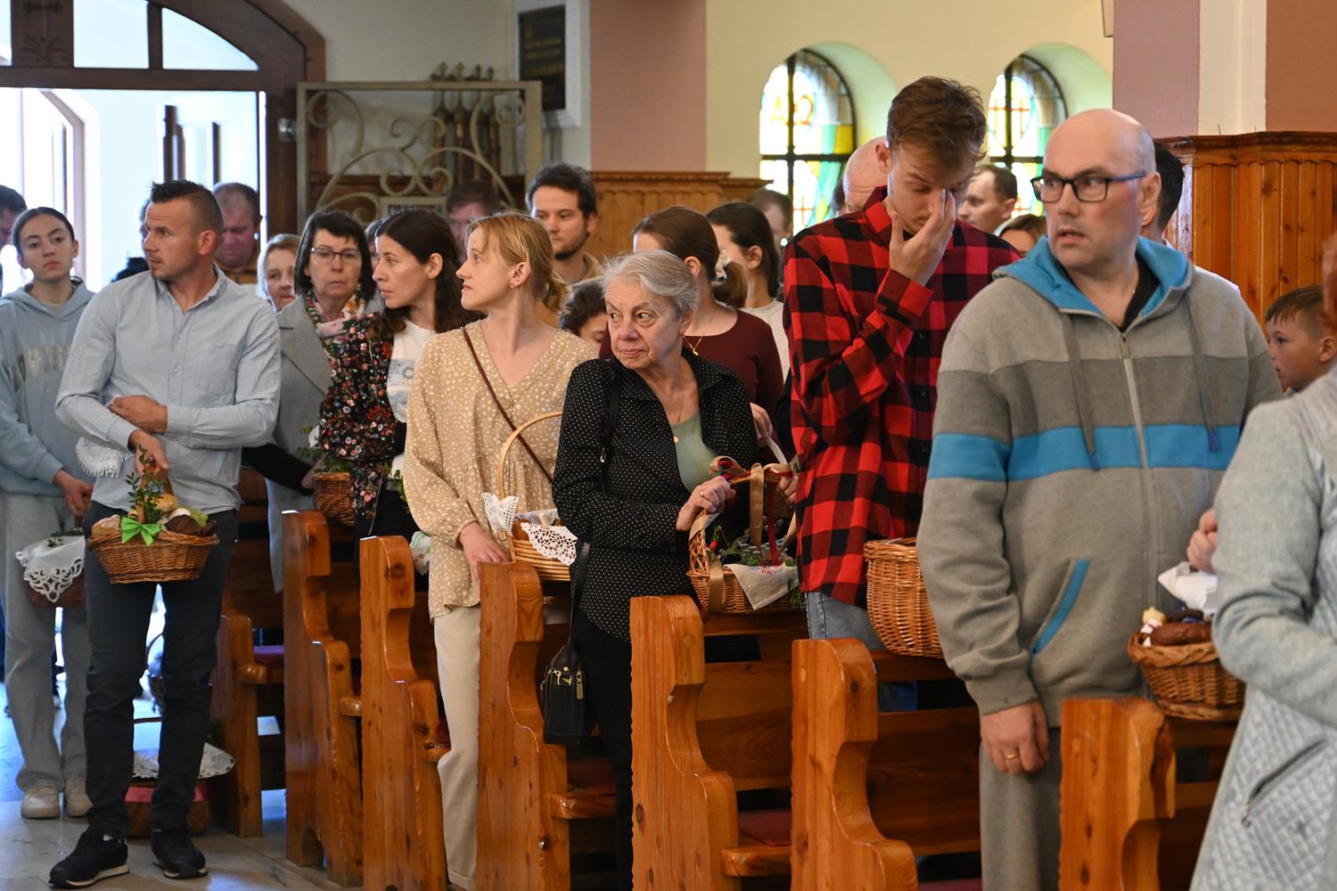 W tym roku, zgodnie z parafialnymi ogłoszeniami, święcenie pokarmów odbyło się o godzinie 12:00, gromadząc licznych mieszkańców z koszyczkami pełnymi symbolicznych potraw.