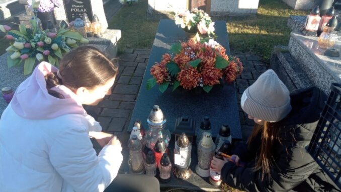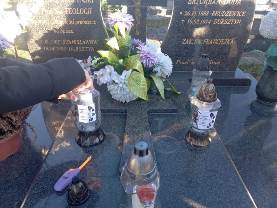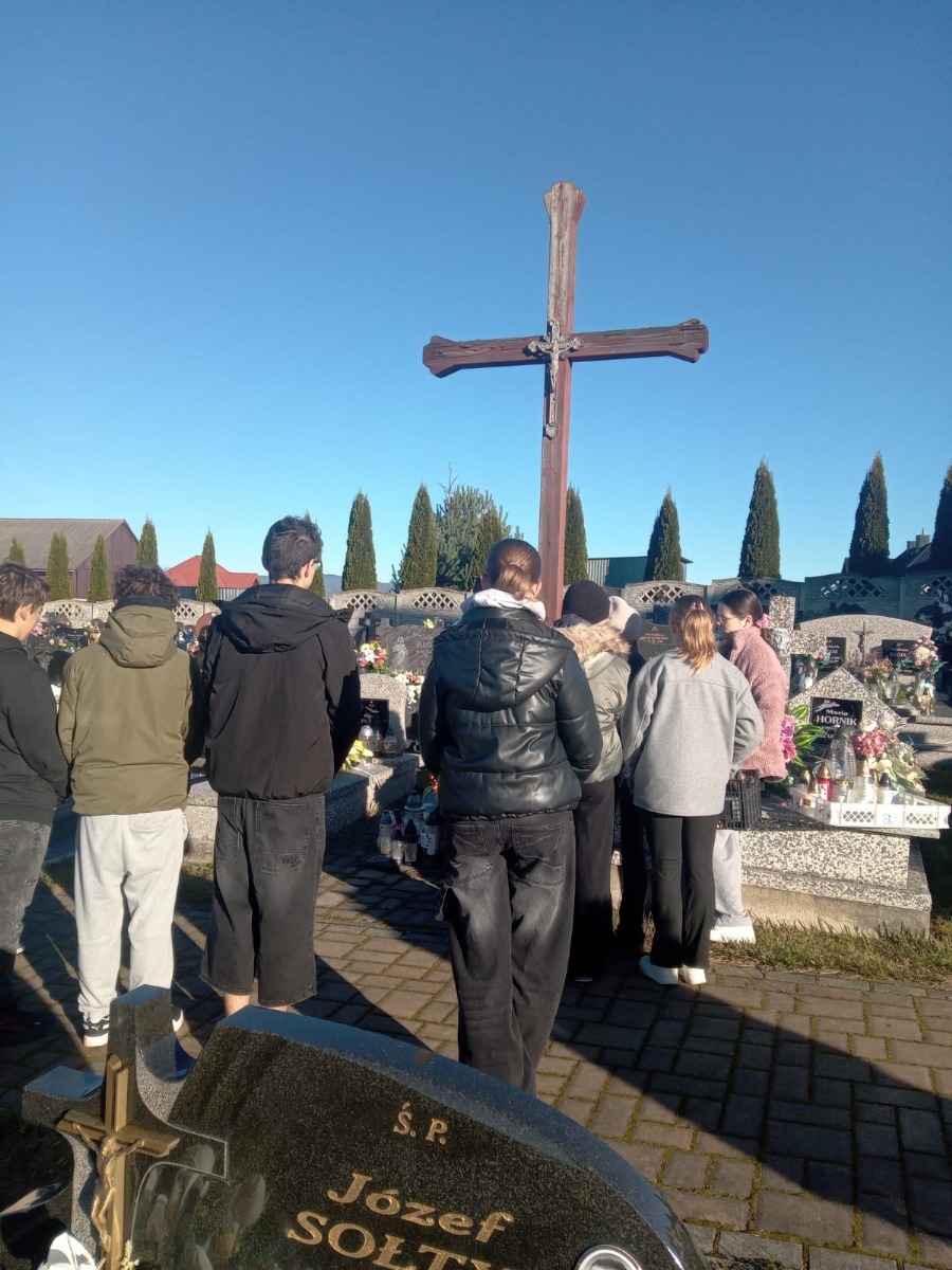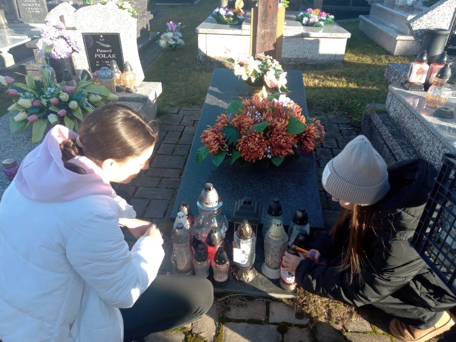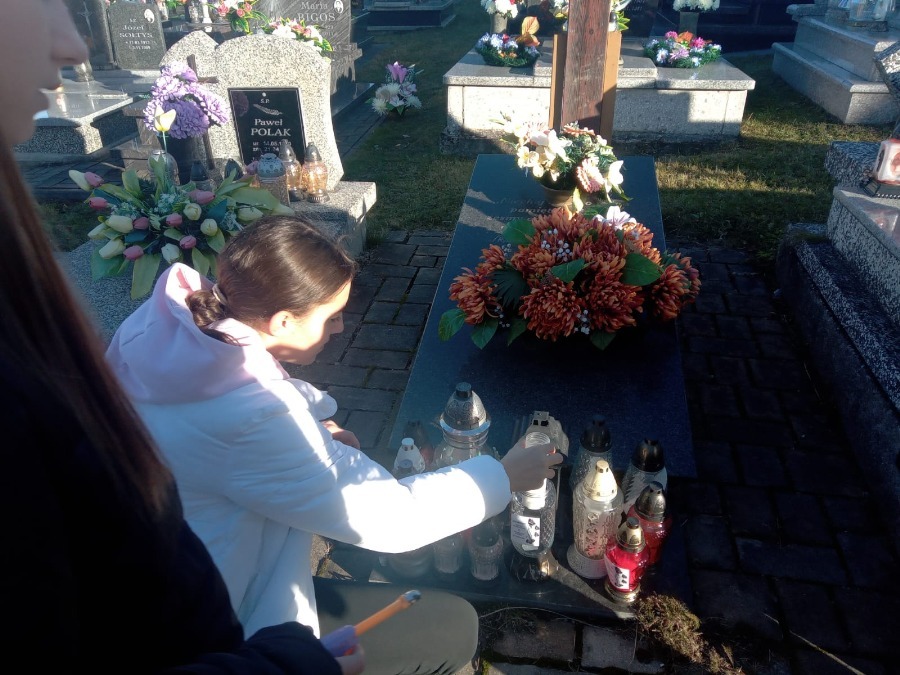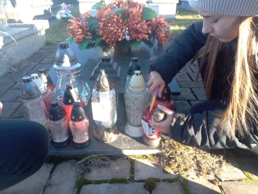 Znicze zapłonęły na grobach ojców franciszkanów pracujących niegdyś w tutejszej parafii, na grobie pierwszej kierowniczki szkoły – Mieczysławy Faryniak, pod krzyżem usytuowanym w centralnym miejscu cmentarza, a także na innych grobach, stanowiąc wyraz pamięci, szacunku i wdzięczności wobec tych, którzy tworzyli historię tej społeczności.